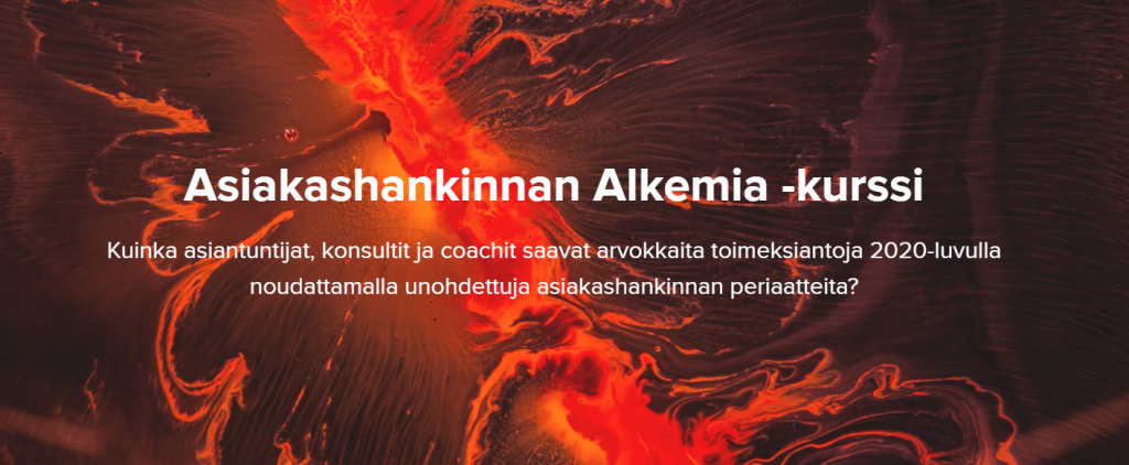 “Asiakashankinnan Alkemia -kurssi yllätti postitiivisesti. Tiivis ja käytännönläheinen paketti asiakashankinnan keskeistä asioista harjoituksineen. Uskon, että koko kurssi antaa syvällistä tietoa ja hyödyttää kaikkia ammattilaisia, jotka haluavat kehittää taitojaan. Suosittelen mielelläni.”