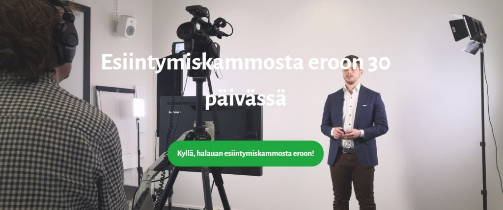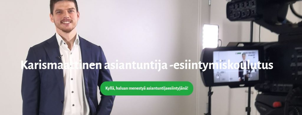 Suomen kattavin online-muotoinen esiintymisvalmennus yli 80 luennollaan ja 100 käytännön harjoitteella. Opit esiintymään karismaattisesti ja vakuuttavasti muun muassa myyntitilanteissa, työhaastatteluissa ja seminaaritilanteissa. Myös etänä!
