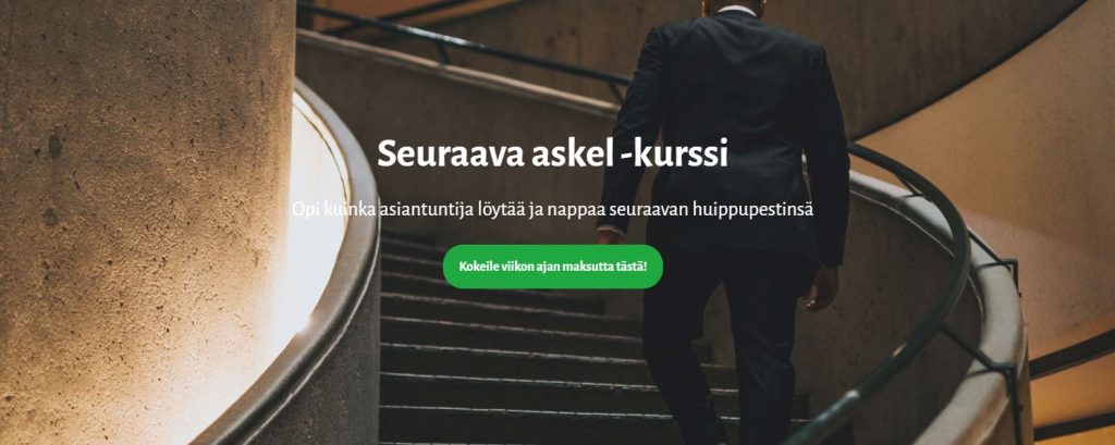 “Kurssin vinkkien avulla sain sanoitettua oman osaamiseni kiinnostavalla tavalla vastaamaan sitä, mitä asiantuntijatoimialani työnantajat etsivät. Kattavien harjoitteiden avulla pystyin myös vastaamaan työhaastattelukysymyksiin itsevarmasti. Lopulta nappasin paikan hyvästä asiantuntijaorganissatiosta!”